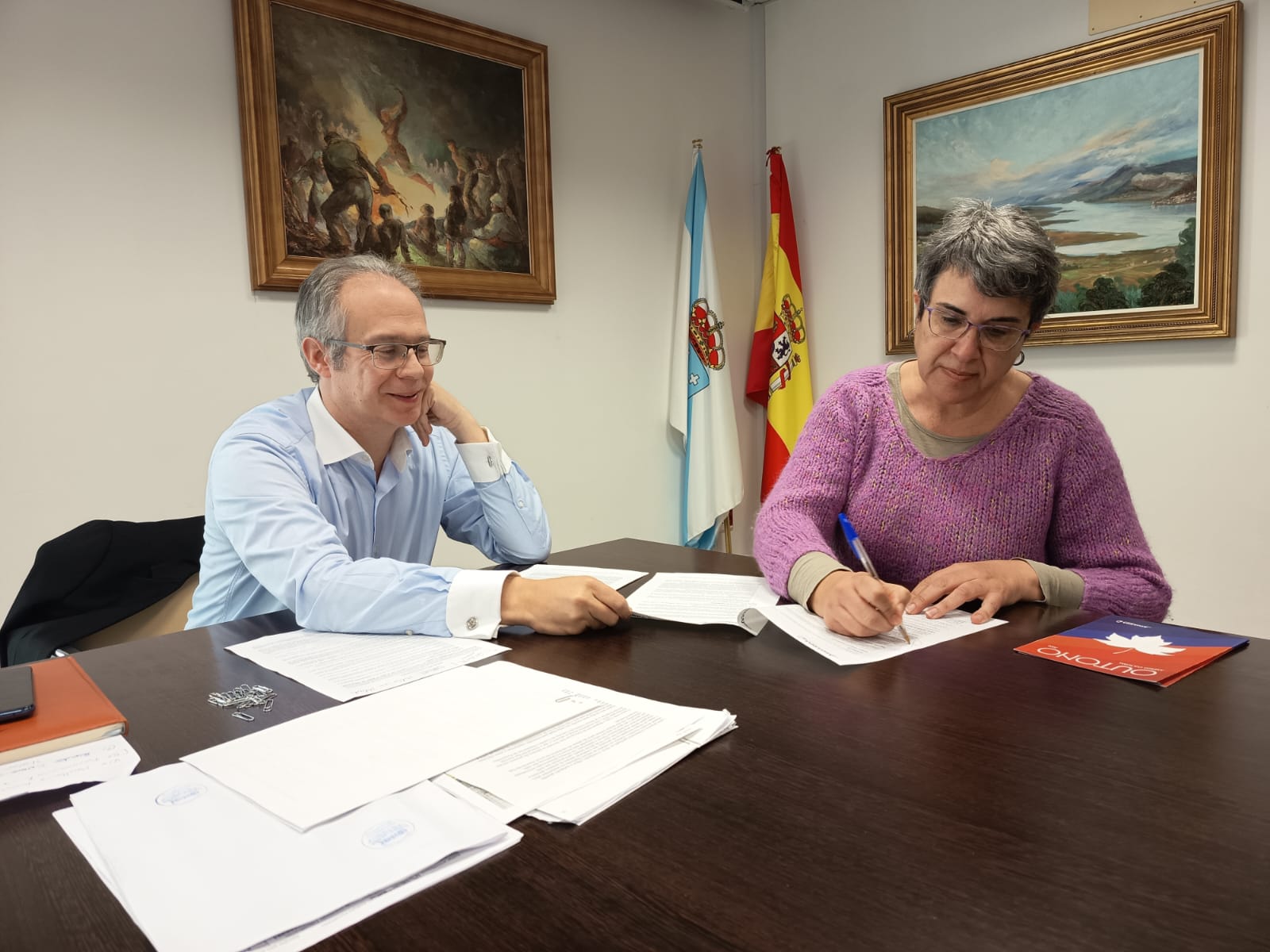 O alcalde da Guarda, Roberto Álvarez Carrero, e a presidenta da Asociación Avelaíña, Neves Piñeiro, formalizaron hoxe a sinatura dun ...